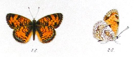 Male lectotype and female paralectotype of Melitaea marcia, 1868.
